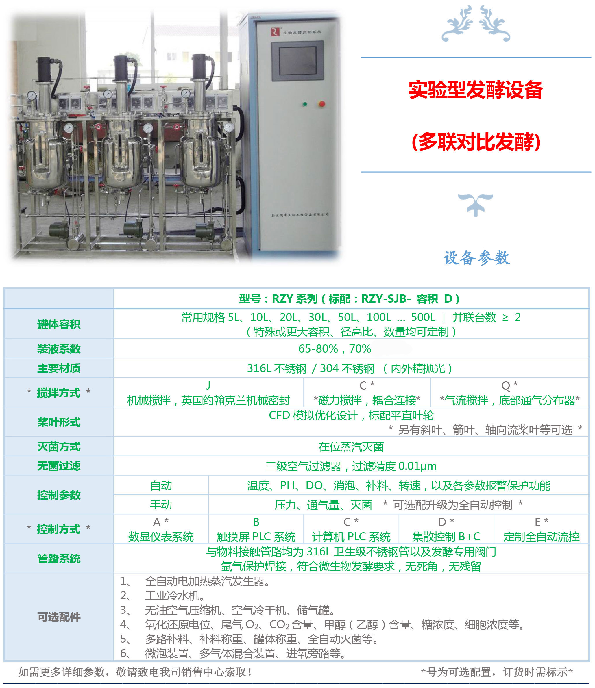 與物料接觸管路均為 316L 衛(wèi)生級不銹鋼管以及發(fā)酵專用閥門